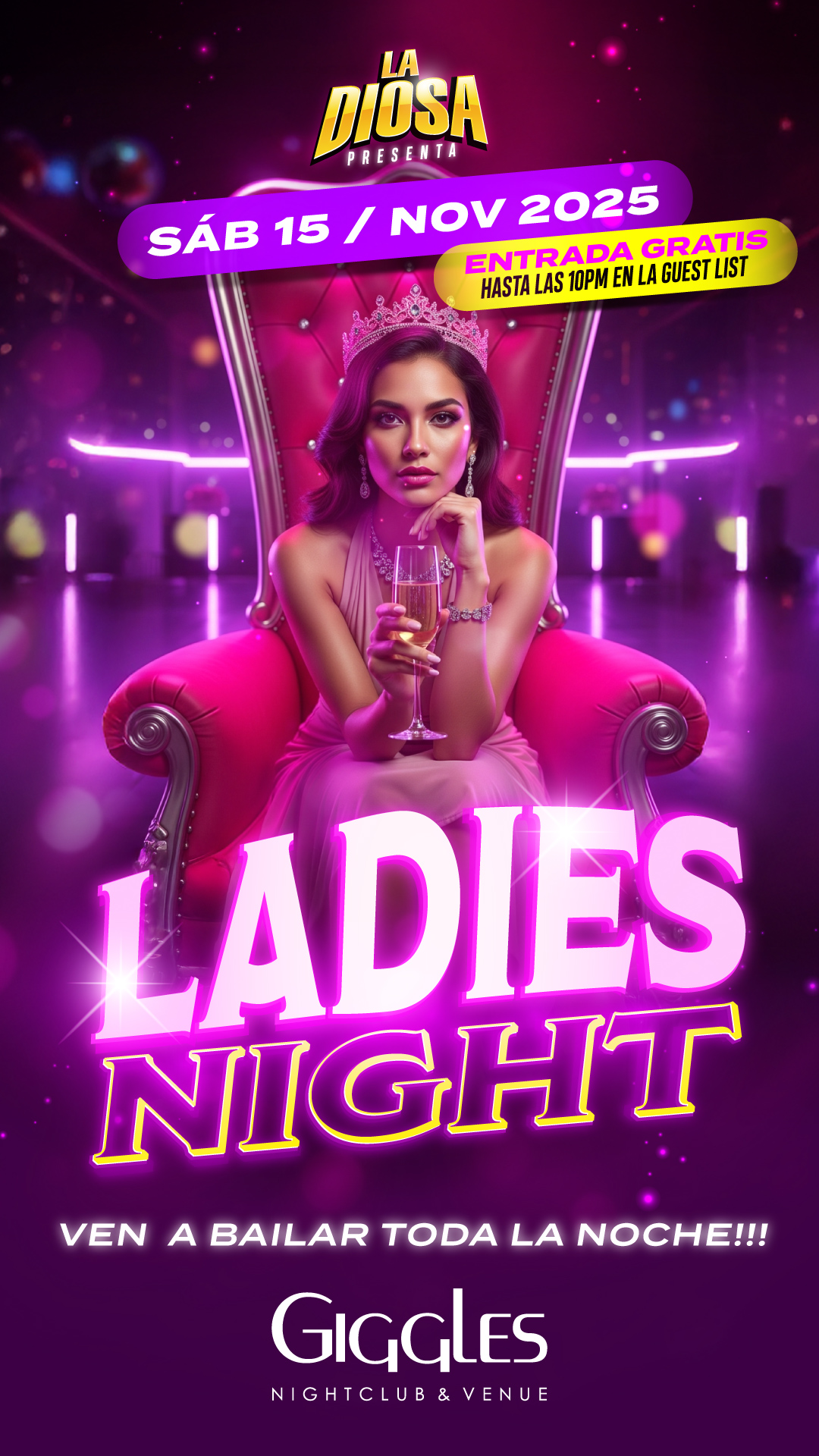 Este Sabado 15 de Noviembre es Ladies Night en Club Giggles! La mejor musica y ambiente hasta las 3am Rock en Español - Cumbia - Salsa - Merengue - Reggaeton - Bachata - Top 40's y mas. Sign up for the guest list below and get in free before 10:0...